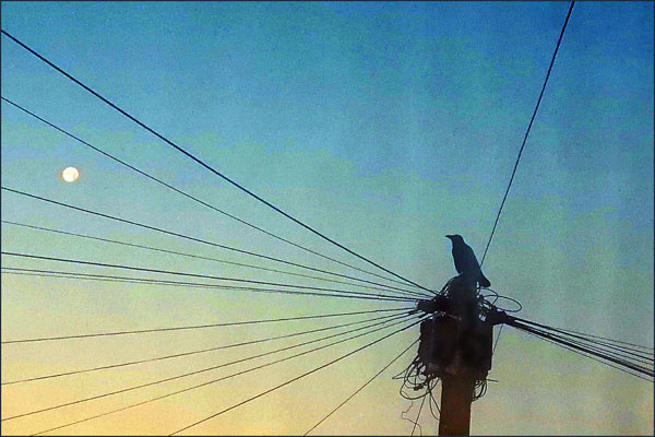 In the Morning Mist, a Crow Salutes the Moon