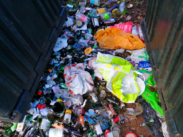 Oh no! The bin is broken and the bottles have fallen out!