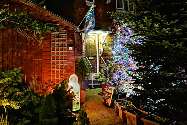 Christmas Lights Man seems not to have quite finished his display but here are a lit up tree and a luminous festive figure. Admin2 went looking for Geminid meteors in a sky that was very clear between the clouds on a night that was warmer than the day, but did not see any.