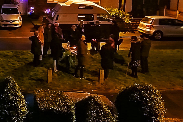 People from up the road celebrating that they have succeeded in colonising the traffic island which is legally part of our territory. Well I hope the people who gave them £500 to install a bench and gazebo on “The Green” were impressed by the massive turnout.