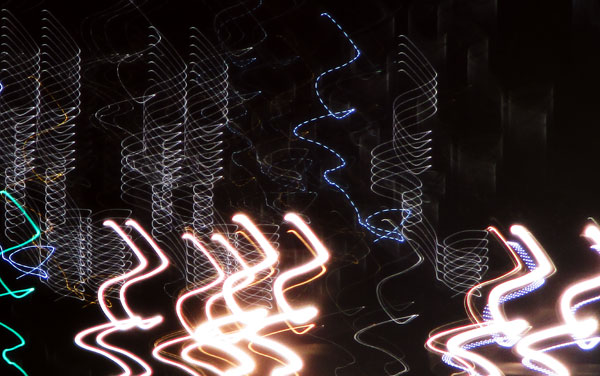 Here’s our best picture of Light Night: the street lamps from the bus stop, taken with a wobbly camera.