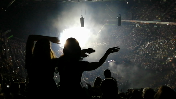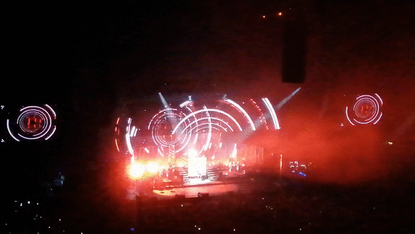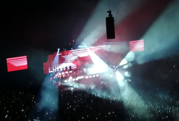Suburbia opened the set, after two and half hours spent getting through airport-strength security and waiting for the arena to fill. There was a spectacular light show, with lots of computer animations: