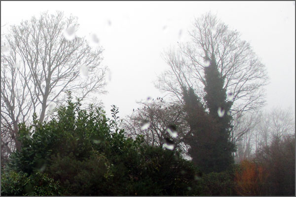 Rain and fog on a foggy rainy day. 2023 is our wettest year ever: over a metre and still going on.