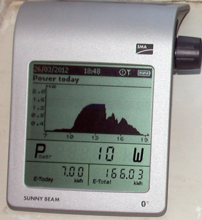 Cloud of the Day: Cirrostratus The Moon and Venus Today the solar panels hit 7kWh for the first time. The flat morning may be due to dew; the jagged afternoon on a cloudless sunny day is a bit of a mystery Lots of watts