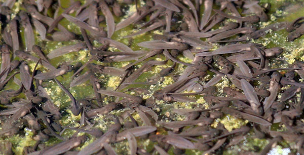 Pond Life Hatching tadpoles. See their tiny fingerlike gills. Admin2 is reading Annihilation by Jeff VanderMeer.