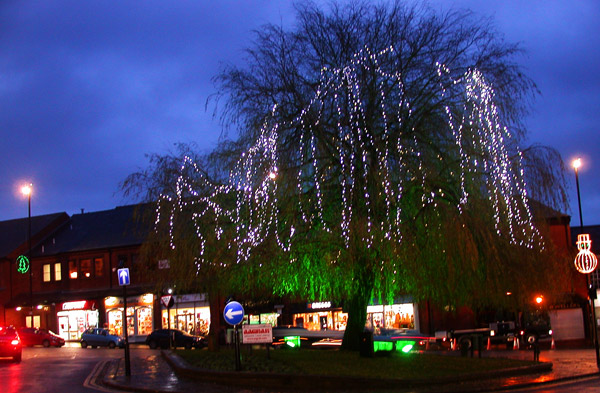 Murk Christmas lights on a cloudy day. Admin1 is reading Unseen by Mari Jungstedt. Admin2 is reading The Return by HÃ¥kan Nesser.