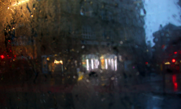 No filters were used to produce this impressionist shot of Kirkgate Market from the wet and steamy window of a moving bus.