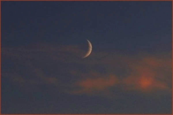 We didn’t have a photo today so this dim moon in a darkening sky is from a couple of days ago. It’s bigger now, and hidden behind clouds.